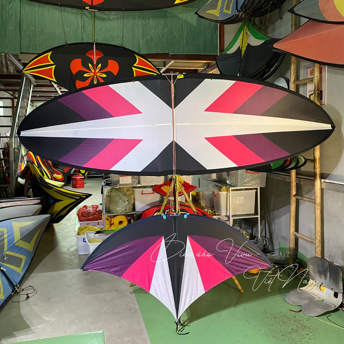 Diều 3m: cái shimano S100, cánh cacbon xoắn dầy (có thể làm tím VIP hoặc chuối theo y/c), đuôi cacbon xoắn, nối đuôi cacbon xoắn