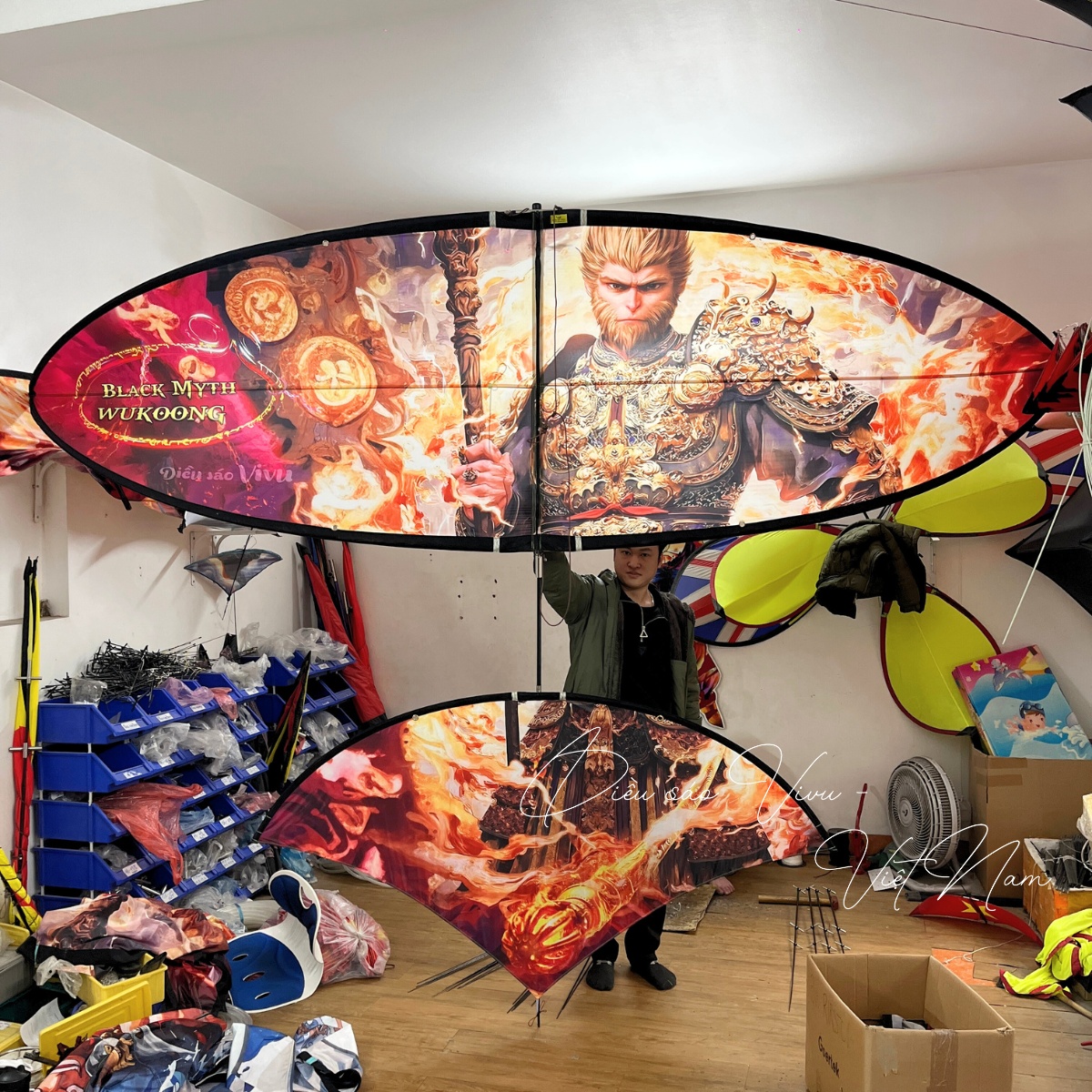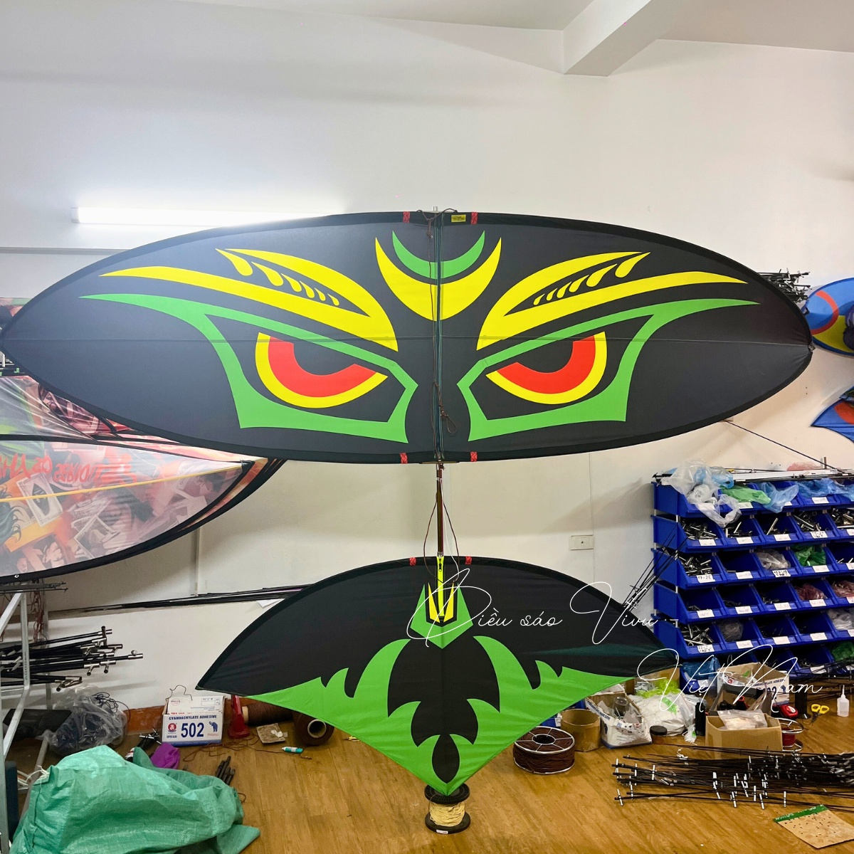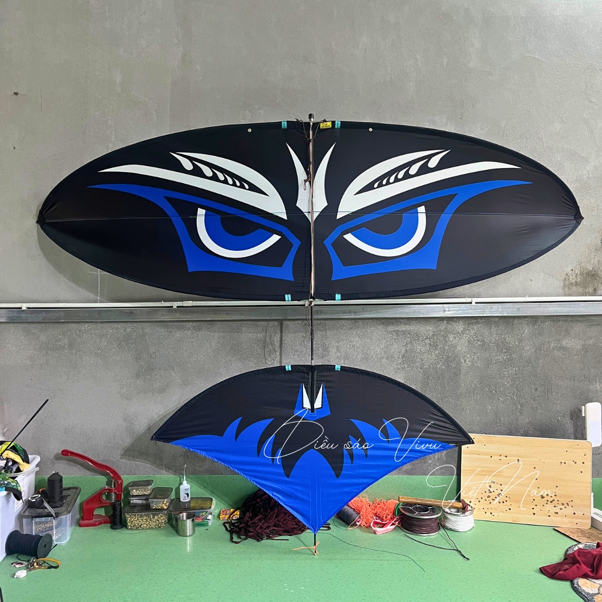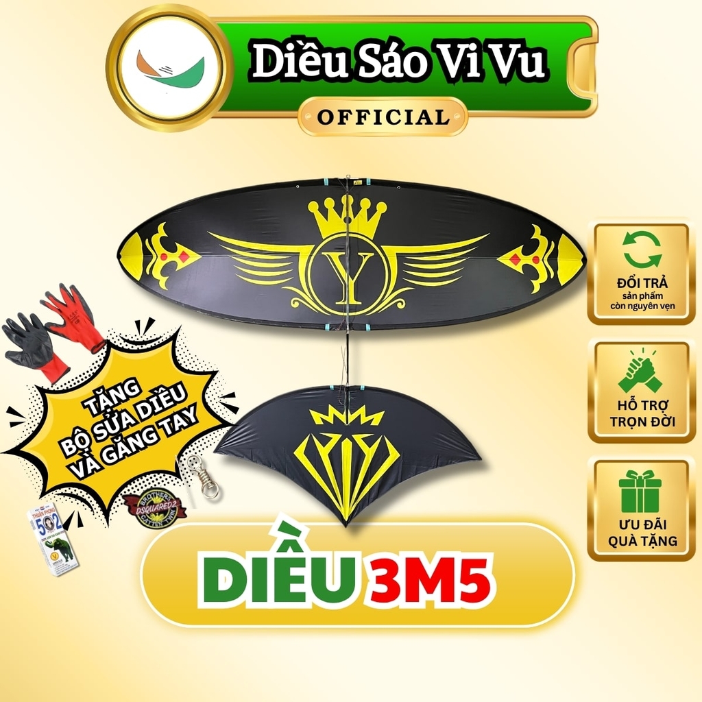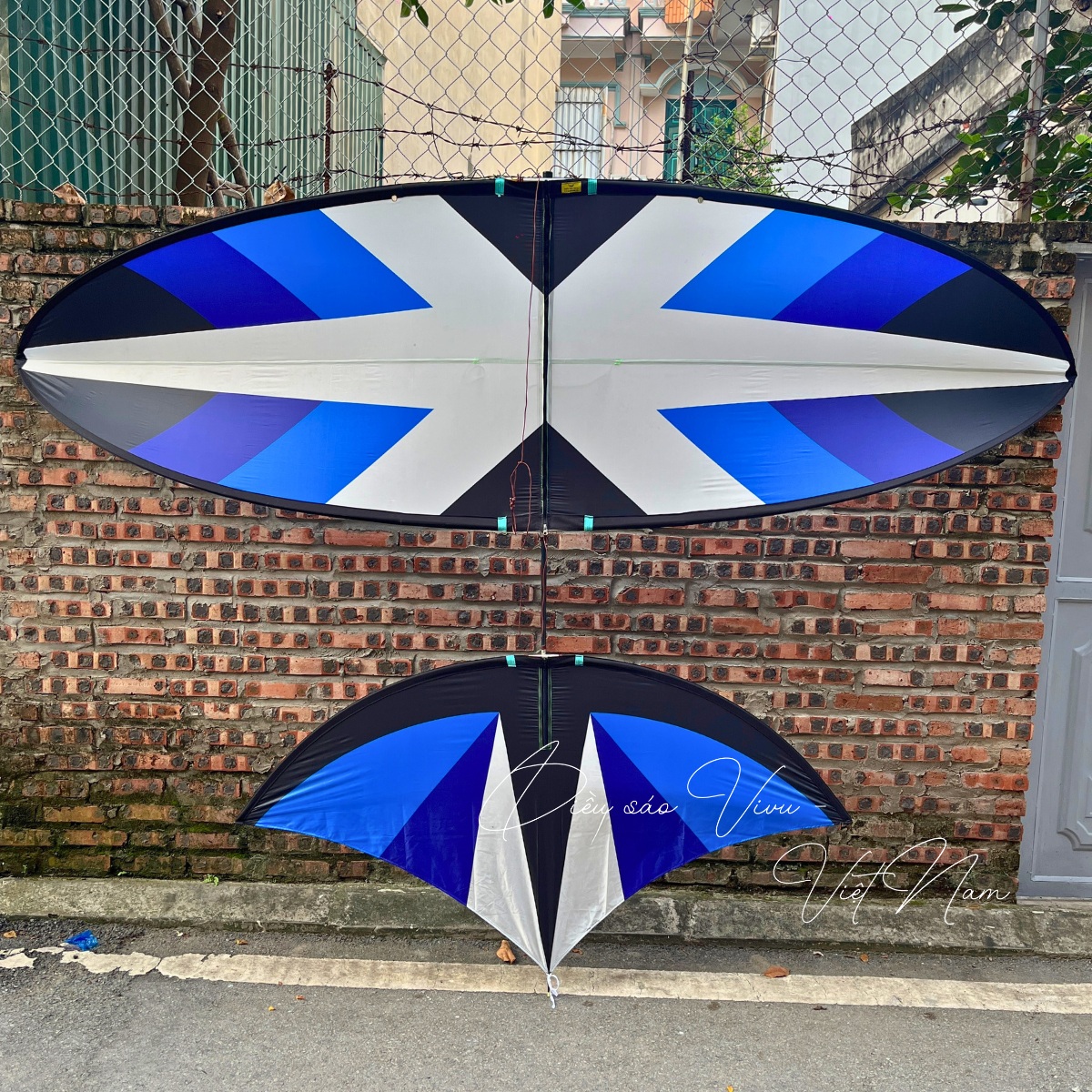 Diều 3m5: cái shimano S100, vai phíp rỗng (có mẫu ko dùng vai), cánh cacbon xoắn (có thể làm tím VIP hoặc chuối theo y/c), đuôi cacbon xoắn, nối đuôi cacbon xoắn