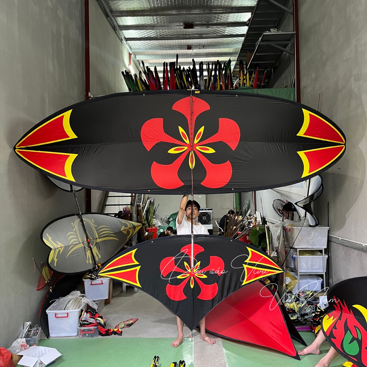 Đuôi diều trùng chưa đẹp ➡️ Diều mẫu cũ có độ hoàn thiện chưa cao, làm thủ công có thể sai sót